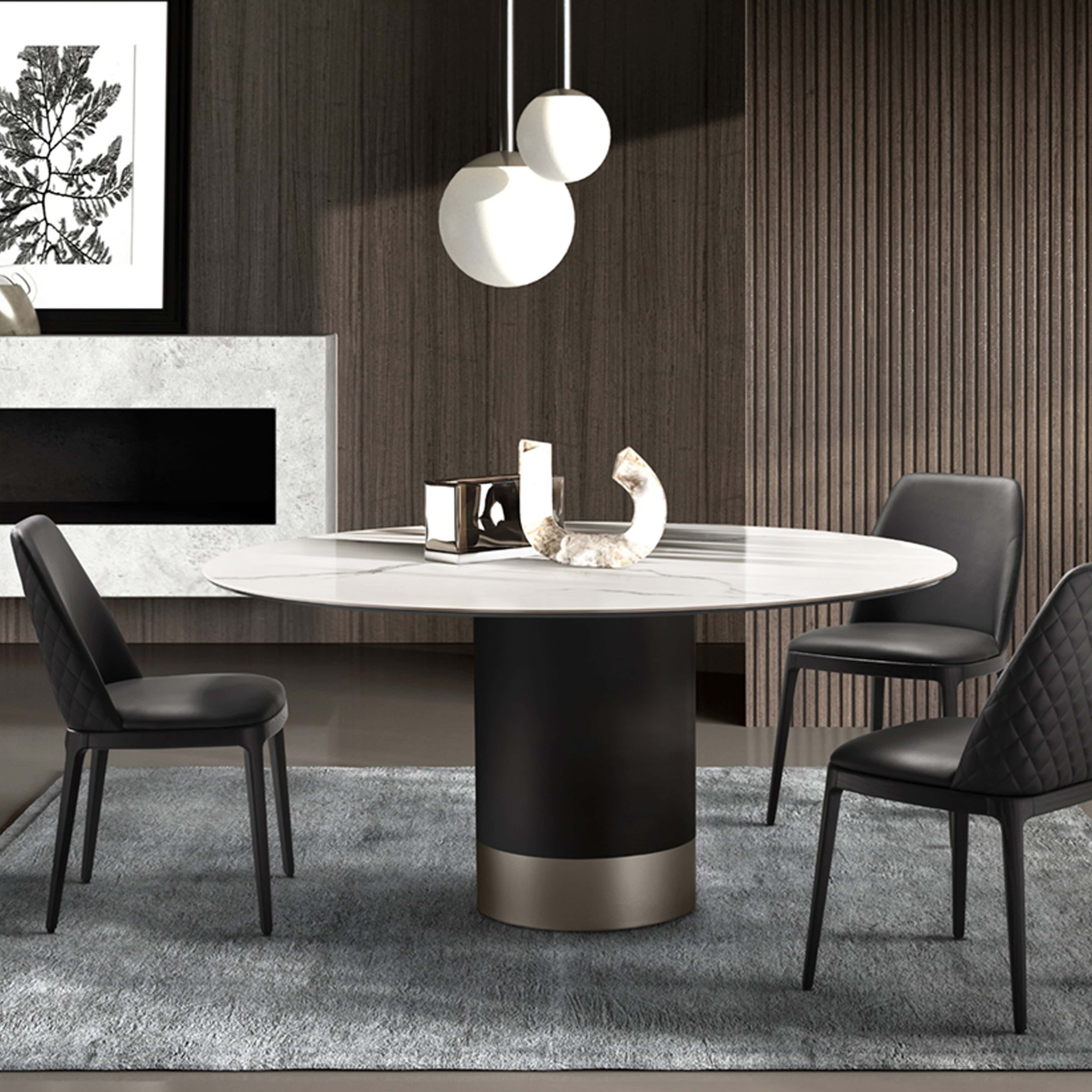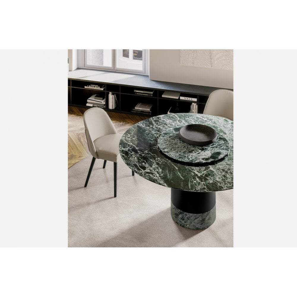 Điểm nhấn đặc trưng của chiếc bàn thiết kế này nằm ở phần chân trụ hình trụ, hoàn thiện kim loại sơn một màu hoặc hai màu. Ở phiên bản này, thiết kế càng trở nên nổi bật nhờ vòng đá cẩm thạch tinh xảo đồng điệu với mặt bàn. Cá tính mạnh mẽ và độc đáo của chiếc bàn đá cẩm thạch Cilindro càng được tôn vinh khi kết hợp cùng ghế Manta bọc da màu ivory. Sản phẩm cũng có sẵn với mặt bàn kính, gỗ hoặc gốm.