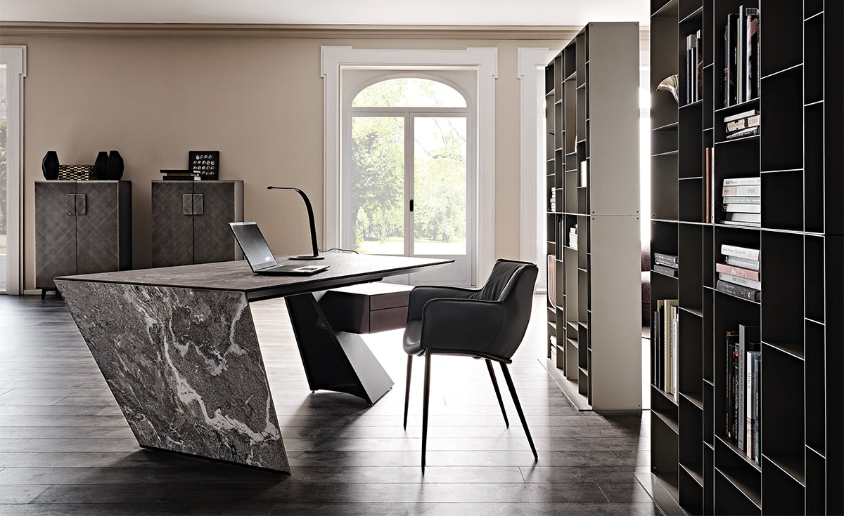 Hiện diện tại hơn 140 quốc gia, Cattelan Italia khẳng định vị thế toàn cầu nhờ những bộ sưu tập mang đậm tinh thần sáng tạo và gu thẩm mỹ tinh tế. Với mạng lưới phân phối rộng khắp, từ các flagship store tại những kinh đô thiết kế đến không gian đơn thương hiệu được thiết kế riêng, thương hiệu mang đến trải nghiệm chuẩn mực của “Made in Italy”. Bàn làm việc hiện đại Nasdaq Keramik là sự kết hợp tinh tế giữa hình khối hình học và chất liệu, tạo nên hiệu ứng như một khối nguyên khối vững chãi. Ngăn kéo gỗ được thiết kế như thách thức trọng lực, đặt trên phần chân thép cắt chéo không gian đầy mạnh mẽ.