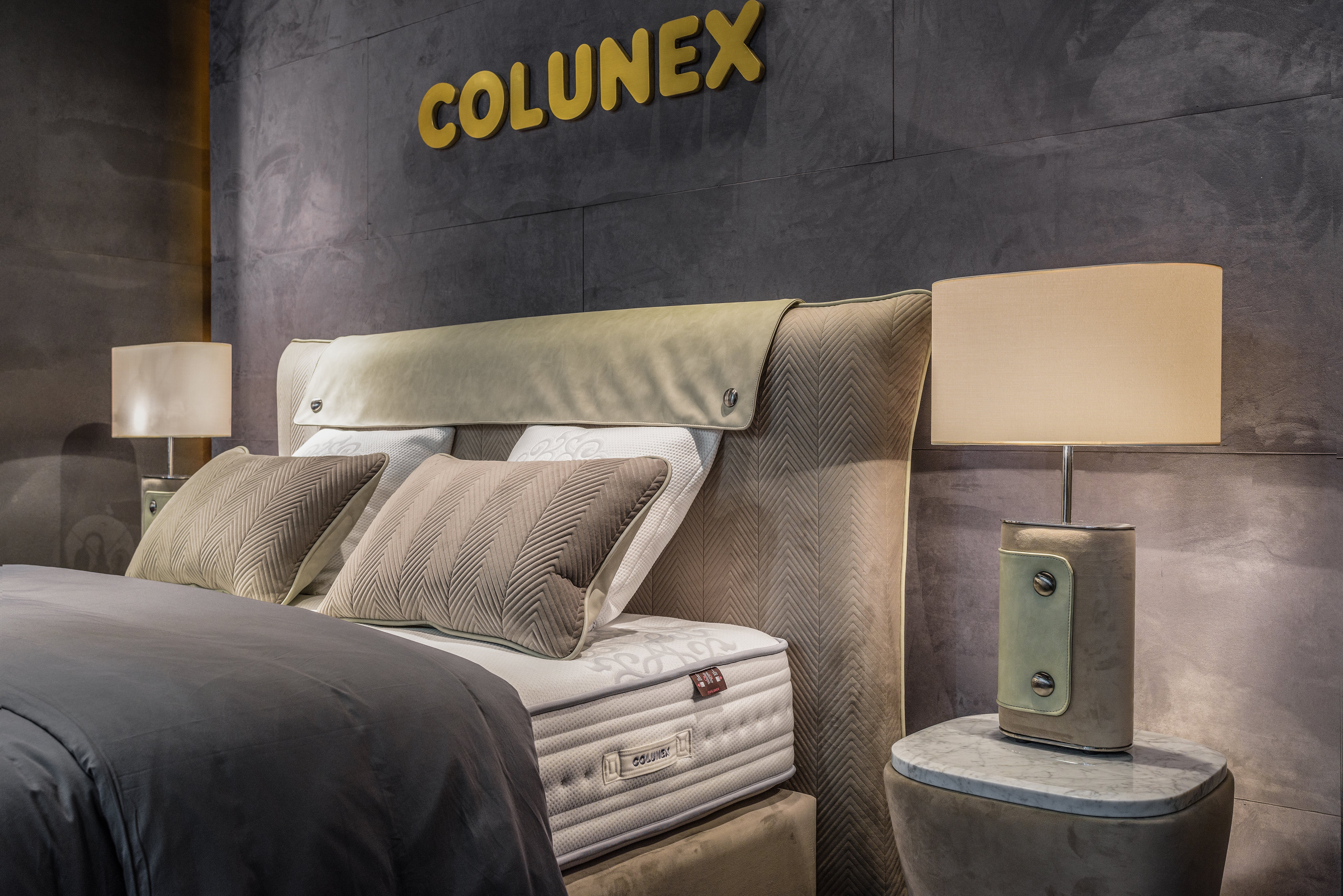 Colunex tạo dấu ấn bằng sự hòa quyện giữa công nghệ tiên tiến và tay nghề thủ công, mang đến những thiết kế cá nhân hóa độc bản, phản ánh phong cách riêng của từng gia chủ. Chiếc đèn Chevron kết hợp các kết cấu mềm mại và chất liệu vải cao cấp, được trang trí bằng nắp bọc và các nút kim loại, tạo nên sự hòa quyện giữa sang trọng và tiện nghi.