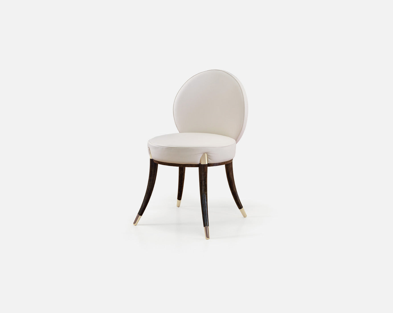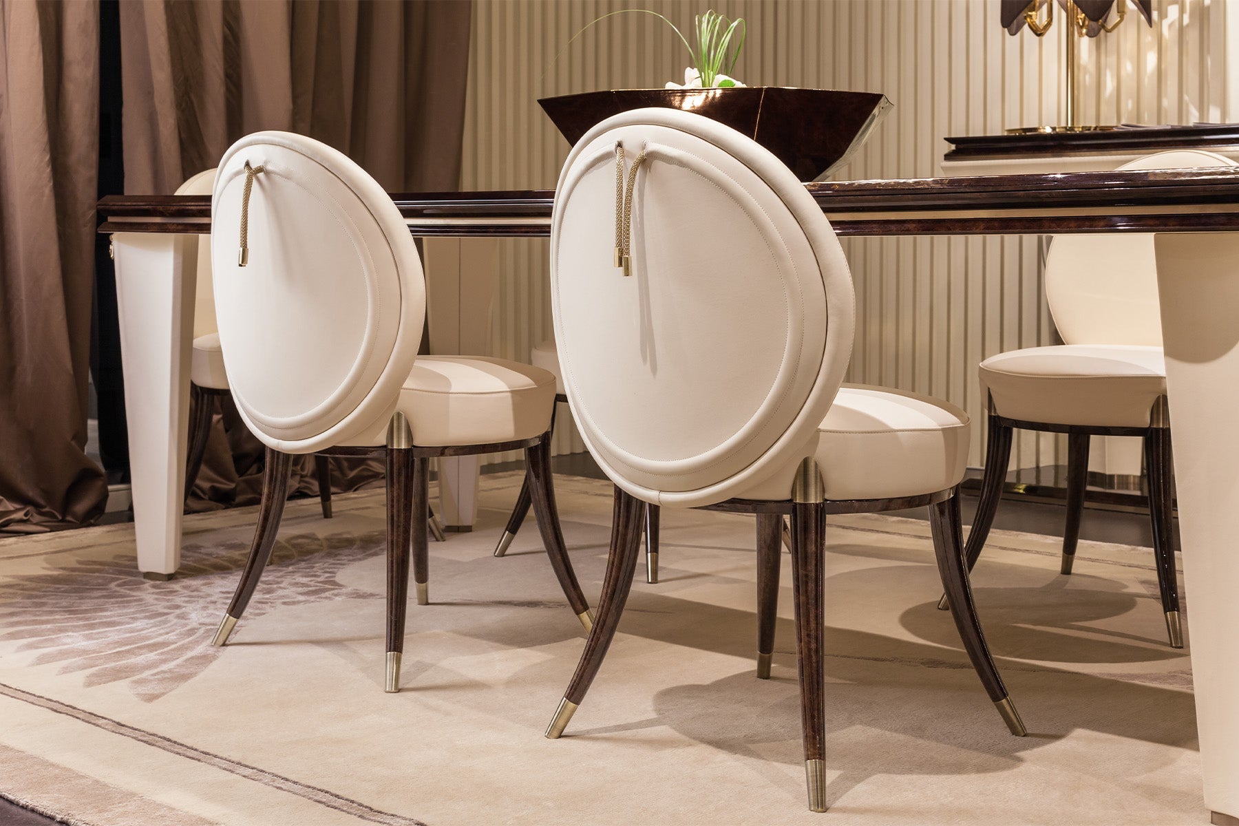 Turri – biểu tượng của nội thất Ý xa hoa từ năm 1925 – chinh phục giới thượng lưu bằng những thiết kế tinh xảo, sang trọng vượt thời gian. Mỗi sản phẩm là sự hòa quyện giữa nghệ thuật thủ công Ý và vật liệu thượng hạng, tạo nên chuẩn mực về chất lượng và thẩm mỹ. Chiếc ghế từ bộ sưu tập Noir có khung gỗ được bọc da, với các chi tiết trang trí bằng đá quý tạo điểm nhấn cho tựa lưng. Với kiểu dáng đơn giản nhưng uốn lượn, chiếc ghế tôn lên vẻ đẹp cho phòng ăn nhờ các chi tiết kim loại mạ vàng nhạt.