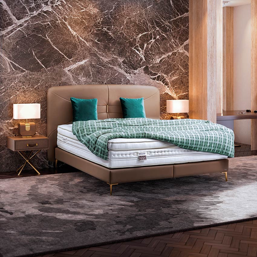 Colunex tạo dấu ấn bằng sự hòa quyện giữa công nghệ tiên tiến và tay nghề thủ công, mang đến những thiết kế cá nhân hóa độc bản, phản ánh phong cách riêng của từng gia chủ. Với những đường cong gợi cảm bao quanh và kéo dài vào bên trong đầu giường, hội tụ tại chi tiết trang trí bằng đồng mạ vàng tinh xảo, Bogart là một thiết kế toát lên vẻ sang trọng và cuốn hút. Chiếc giường này được ứng dụng nhiều cải tiến về sự thoải mái, mang đến trải nghiệm xa hoa và trọn vẹn hơn.